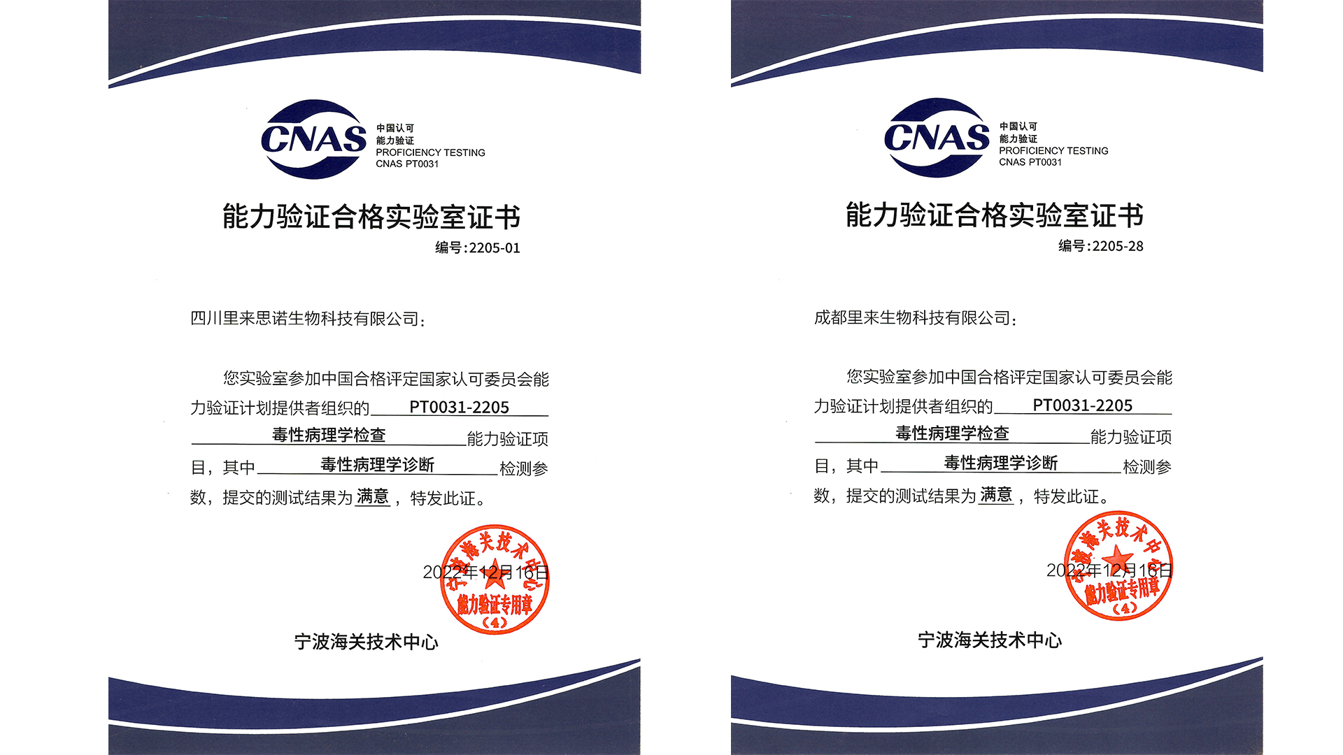 毒性病理CNAS能力驗證滿意證書