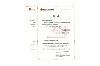 2021年毒性病理檢測實驗室室間比對優(yōu)秀證書