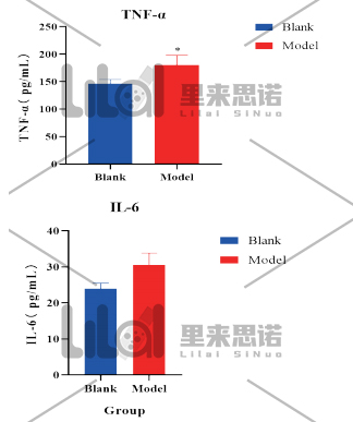 血清生化指標(biāo):試驗(yàn)終點(diǎn),采集小鼠血清進(jìn)行炎癥因子IL-6,TNF-α的檢測(cè)。