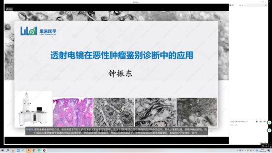里來生物在后續(xù)實(shí)驗(yàn)病理學(xué)公益網(wǎng)絡(luò)學(xué)習(xí)會(huì)上作《透射電鏡在腫瘤鑒別診斷中的應(yīng)用》匯報(bào)此外,公司首席電鏡技術(shù)顧問楊果老師與首席病理技術(shù)顧問汪開毓教授也列席學(xué)習(xí)會(huì),與業(yè)內(nèi)各專家就實(shí)驗(yàn)病理學(xué)領(lǐng)域的前沿議題和發(fā)展趨勢(shì)進(jìn)行了深入而富有成效的交流。